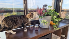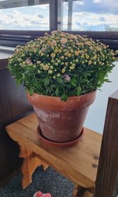 Höstblommor och solmys på balkongen