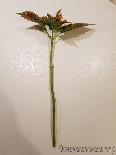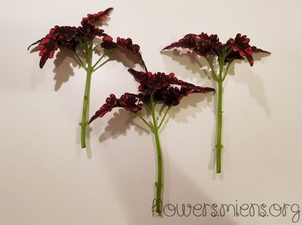 Det lite svårare blir ett flätat träd från Victorian Ruffles. Jag har aldrig försökt att fläta en stam förut så det ska bli en utmaning. Jag har tre sticklingar med ungefär lika lång stam, har inte mätt med linjal utan ögonmåttade lite. Även här har jag tagit bort alla blad utom de översta,
