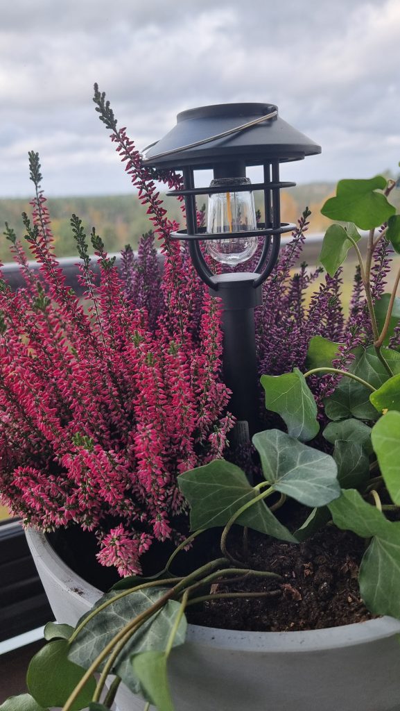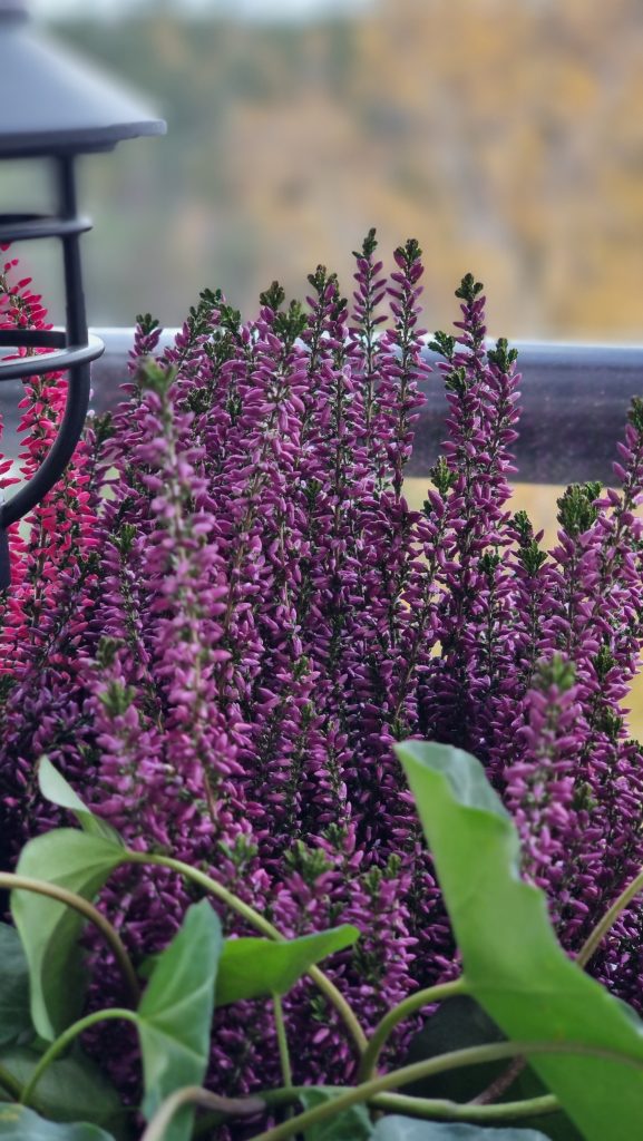 Hösten är här och balkongens sommarblommor har gjort sitt. I krukorna finns det nu ljung och små pumpor och ljuslyktor har hittat sin väg ut.